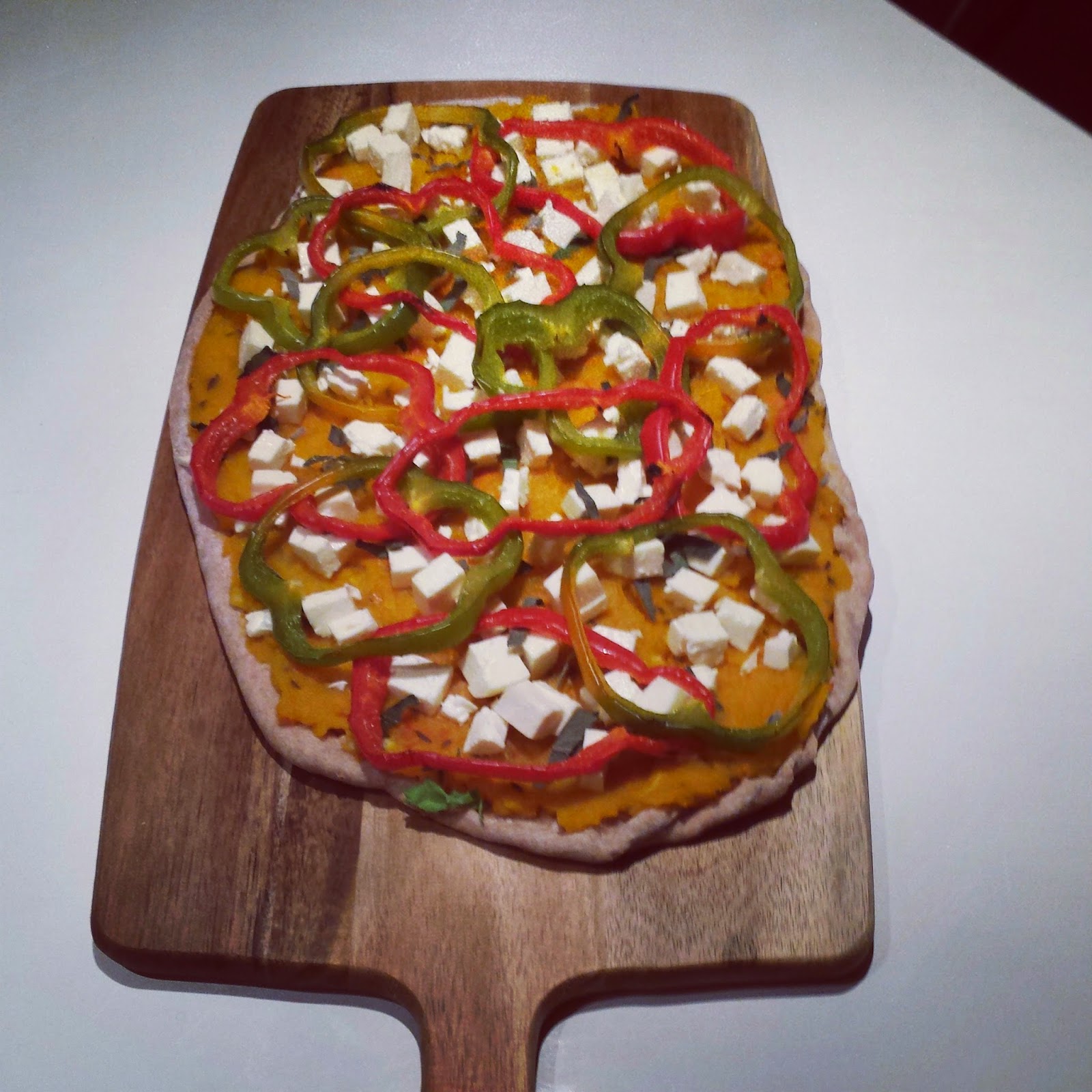| Pizza met pompoensaus, paprika en feta |